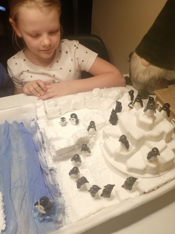 Klasa I a i I b zakończyła realizację II modułu projektu „Czytam z klasą lekturki spod chmurki”. Lekturę, którą wybraliśmy do omówienia w ramach programu to „Zaczarowana Zagroda” – A. i Cz. Centkiewiczów. Z wielkim zaangażowaniem uzupełniliśmy też Lekturniki. Przy okazji omawiania książki uczniowie klasy I a, mieli do wykonania zadanie specjalne. Każdy uczeń wykonał makietę przedstawiającą kluczową scenę z lektury, a mianowicie – ucieczkę pingwinów z lodowej zagrody. Dzieci wykorzystały masę solną, plastelinę, pudełeczka oraz swoją wyobraźnię. Uczniowie klasy I b natomiast wykonali Eko – pingwinka, wykorzystując do tego rolki po papierze toaletowym, farby i wycinanki. Obie klasy zrobiły plakaty zachęcające do przeczytania tej lektury. Wykonując zadania projektowe wszystkie dzieci bawiły się znakomicie. Przedstawiamy efekty kreatywnej pracy naszych zdolnych uczniów.