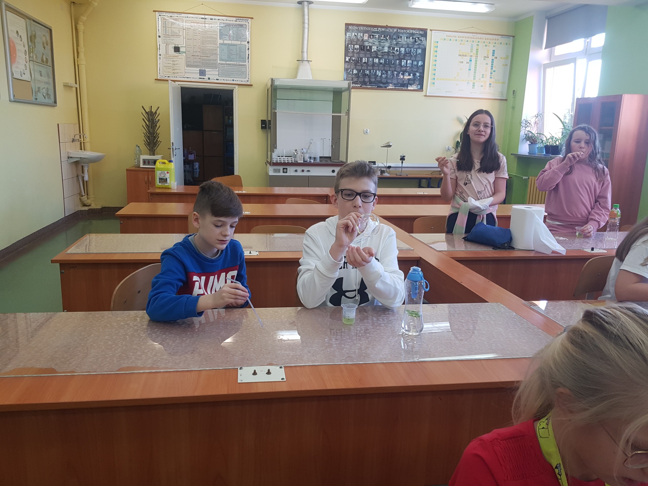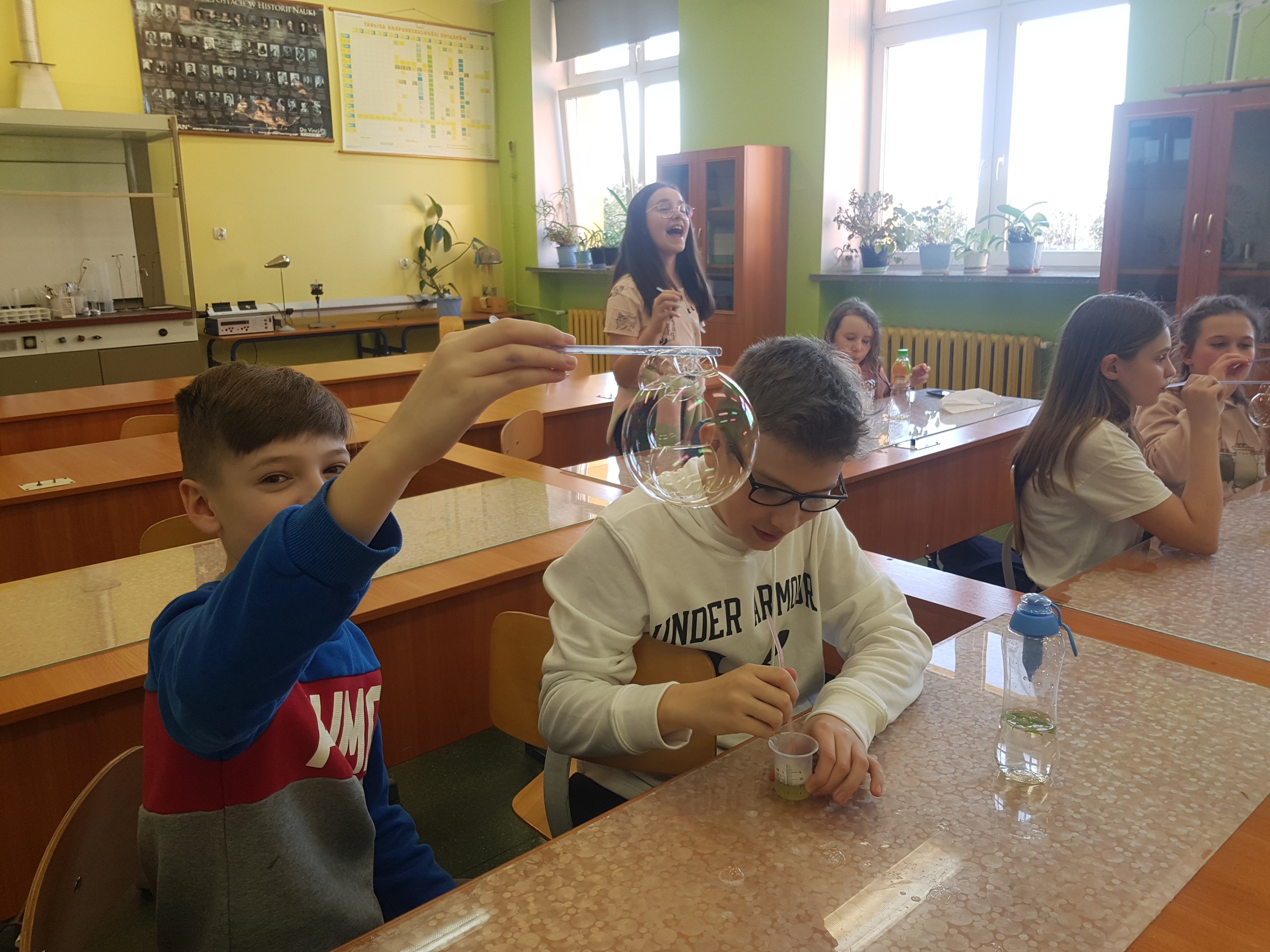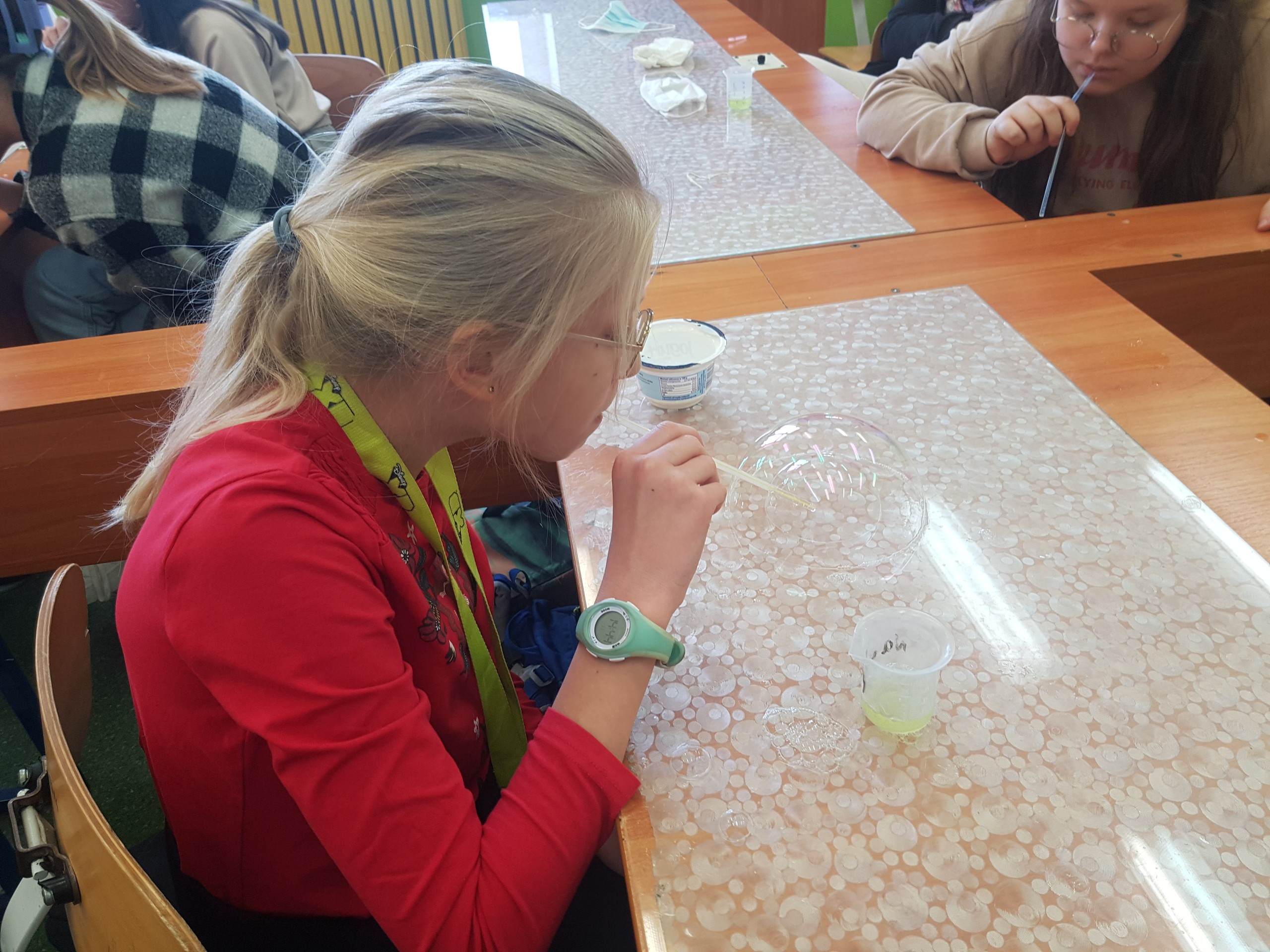 W trakcie zajęć rozwijających dzieci poznały zjawisko fizyczne – napięcie powierzchniowe, a następnie badały je podczas doświadczeń z bańkami. Na kolejnych zajęciach dowiedziały się dlaczego samoloty latają. Każdy mógł zbudować samolot, a na zakończenie odbył się konkurs na najdalej lecący samolot. Najlepszymi budowniczymi okazali się Marysia i Franek, ich samoloty poleciały najdalej.