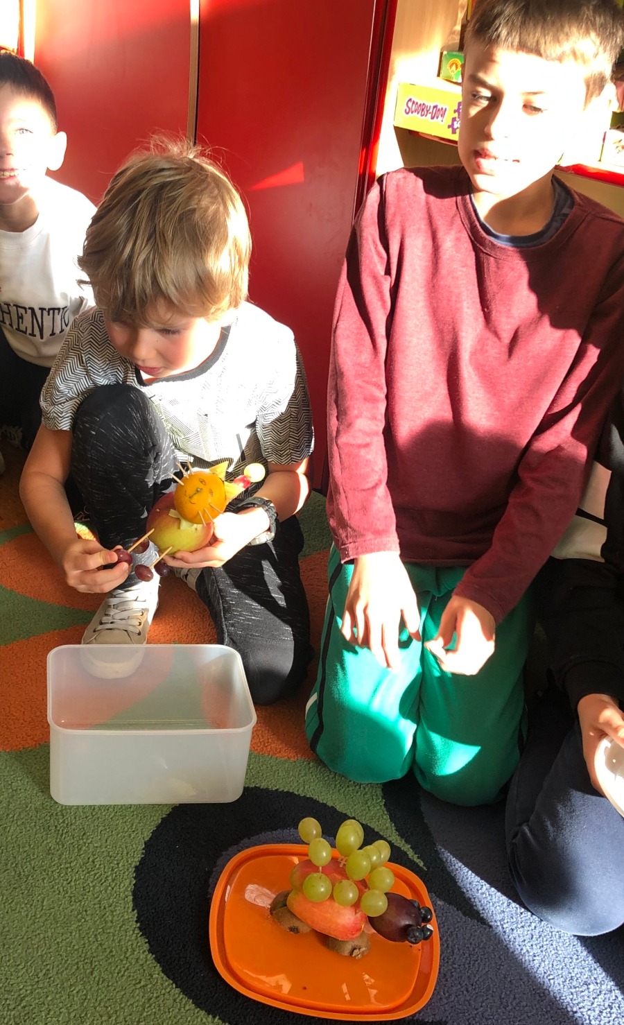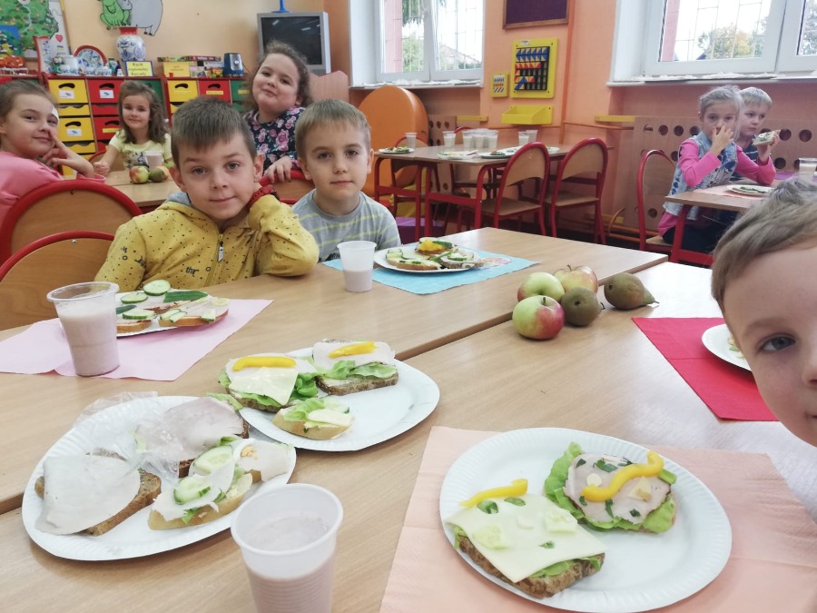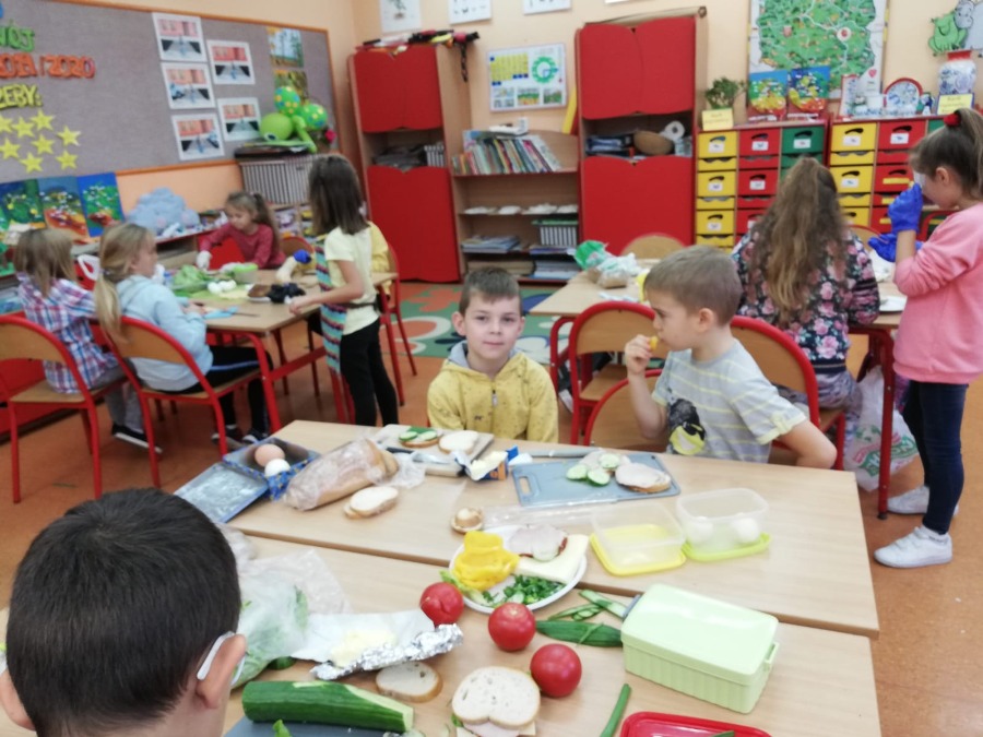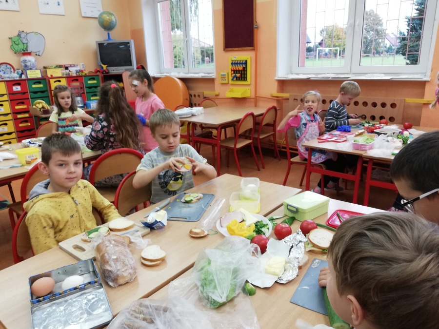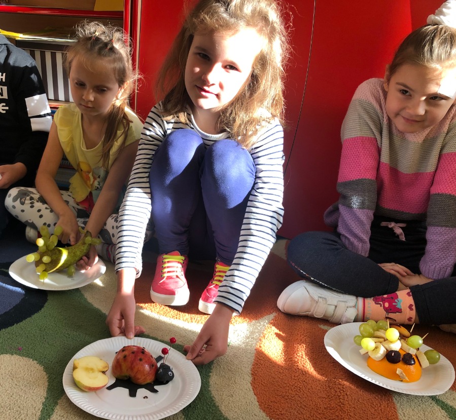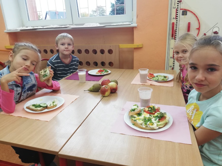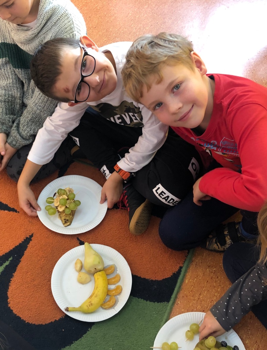 Jesień jest czasem zbiorów plonów w sadach i ogrodach. Jest to najlepszy moment, by uświadomić dzieciom znaczenie zdrowego odżywiania. Klasa 2A wspólnie z wychowawczynią P. Joanną B. i P. Agnieszką P-M realizowały w październiku cykl zajęć promujących zdrowy sposób odżywiania się. Zajęcia praktyczne poprzedzone były zajęciami teoretycznymi wplecionymi w cykl lekcyjny m.in. znajomość warzyw i owoców, witamin itp. Robiliśmy pyszne zdrowe kanapki i koktajl mleczny z owocami :-)popatrzcie na fotki... pychotki kanapkowe. Parę dni później projektowaliśmy i wykonywaliśmy owocowe zwierzaki...powstały zwierzaki -cudaki :)) Pozdrawiamy Klasa 2A
