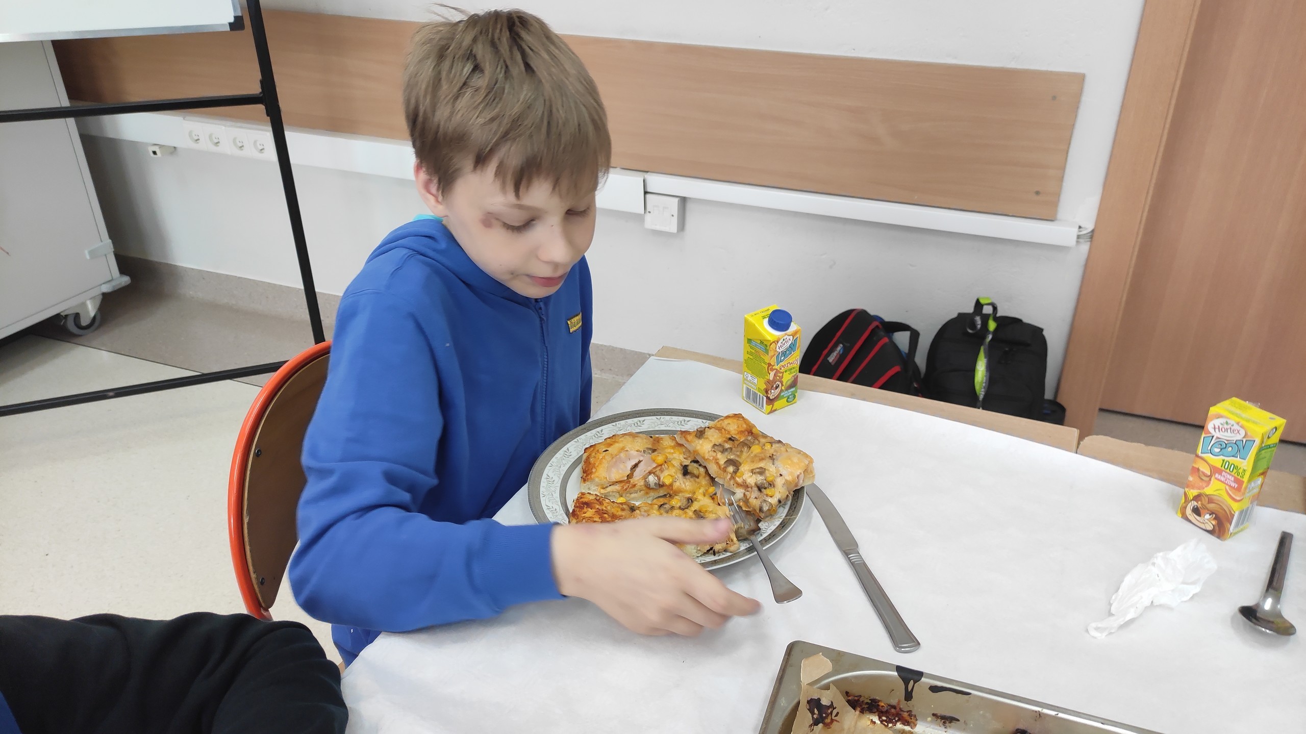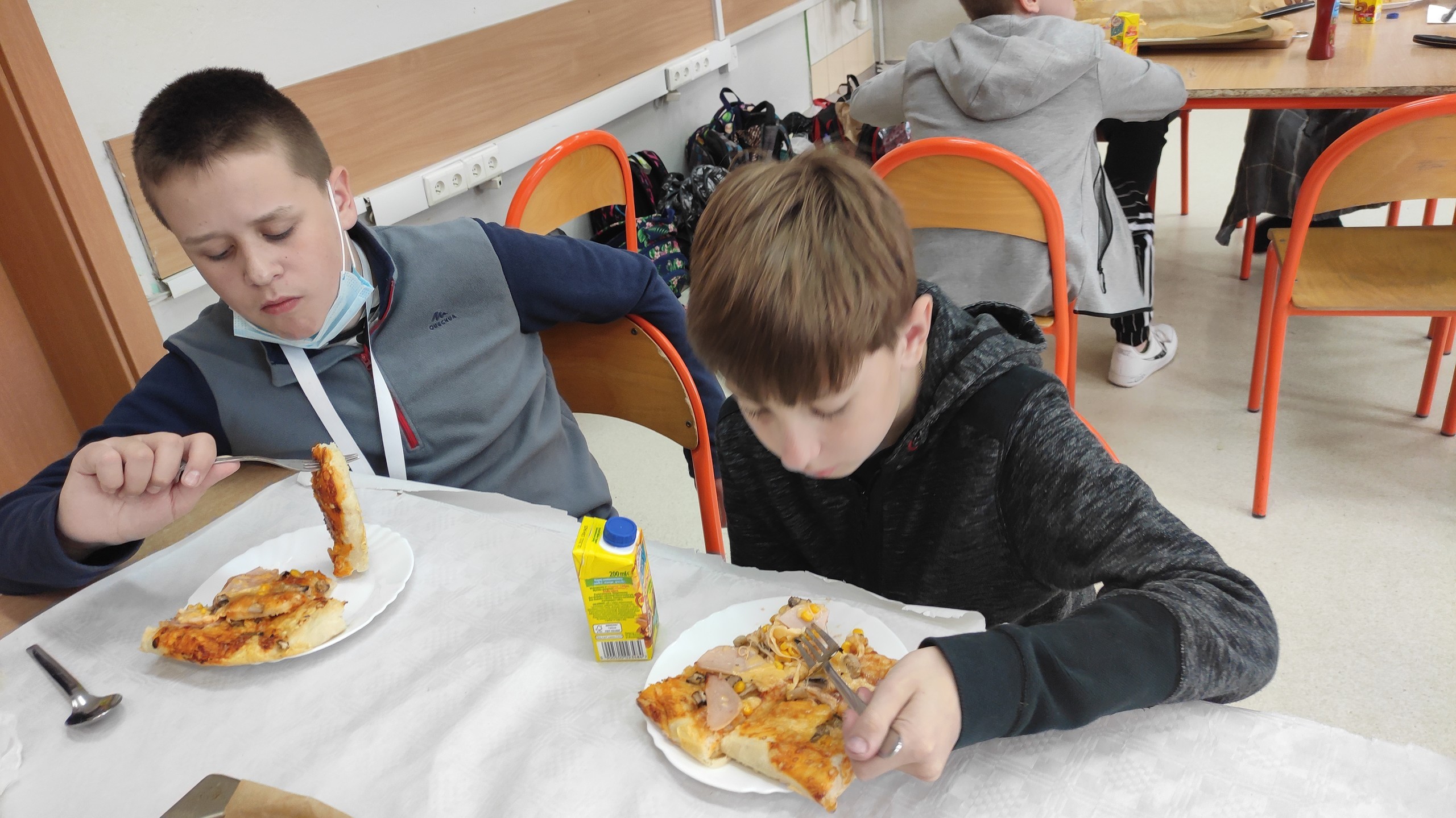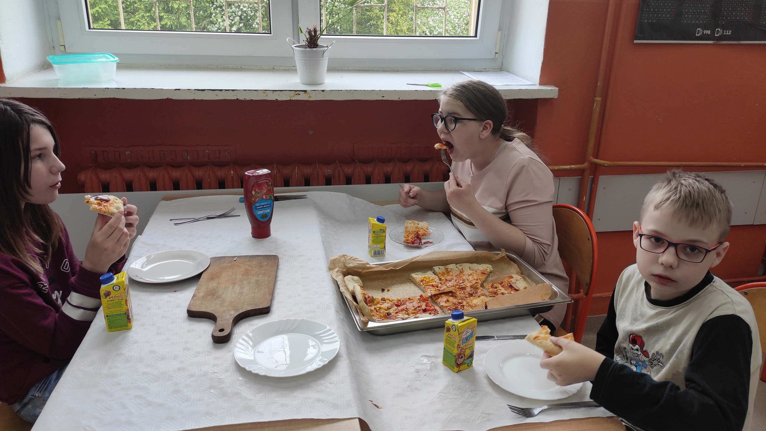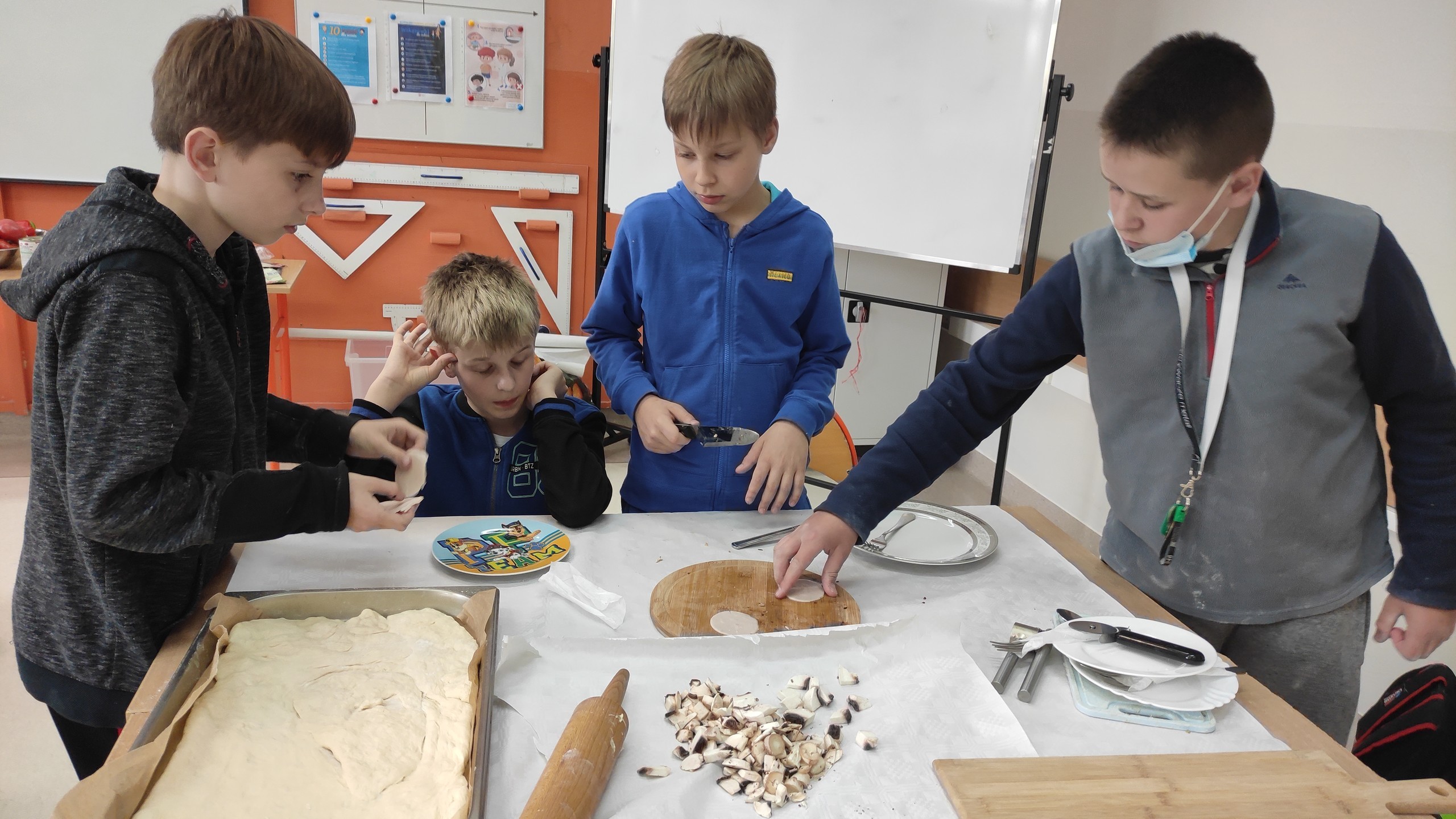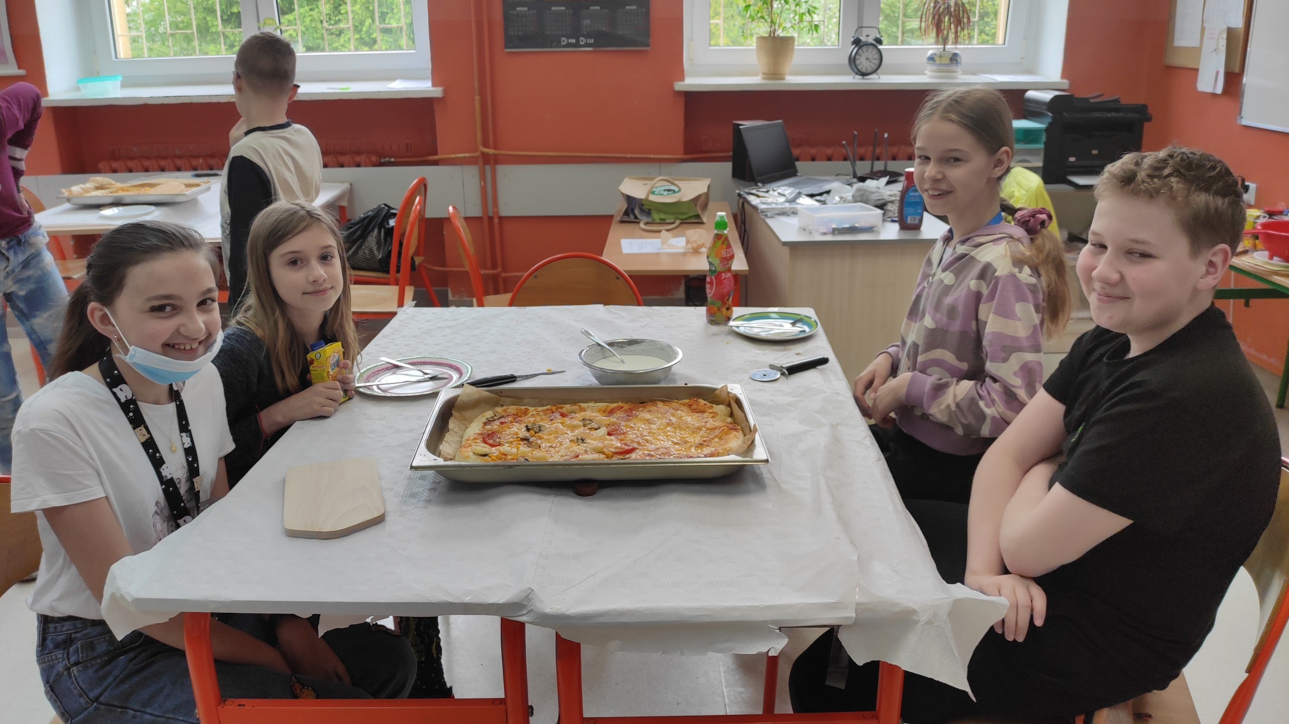 Uczniowie na warsztatach wykonywali praktyczne obliczenia, wykorzystali grę matematyczną z ułamkami oraz zo najważniejsze wykonali i upiekli pizzę według zaszyfrowanego przepisu.