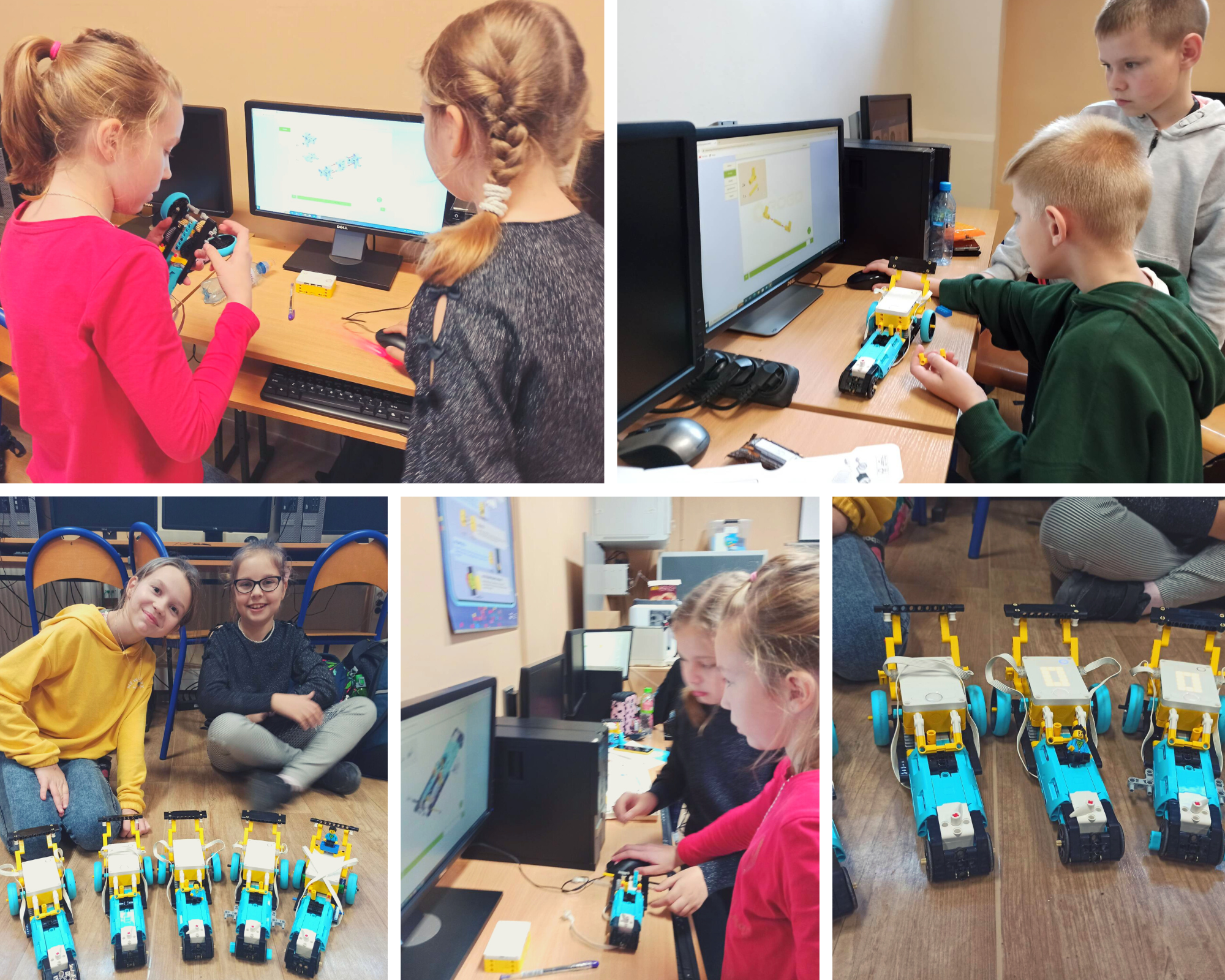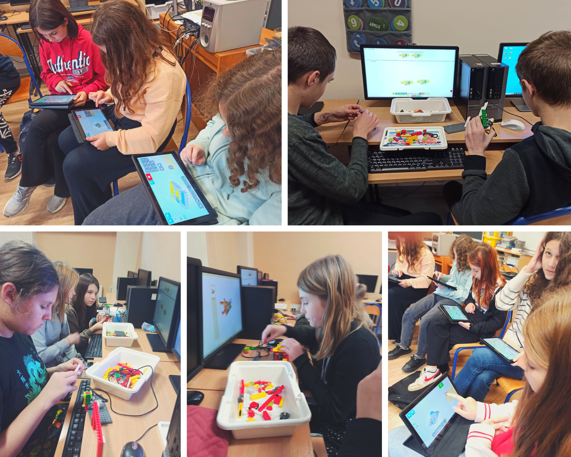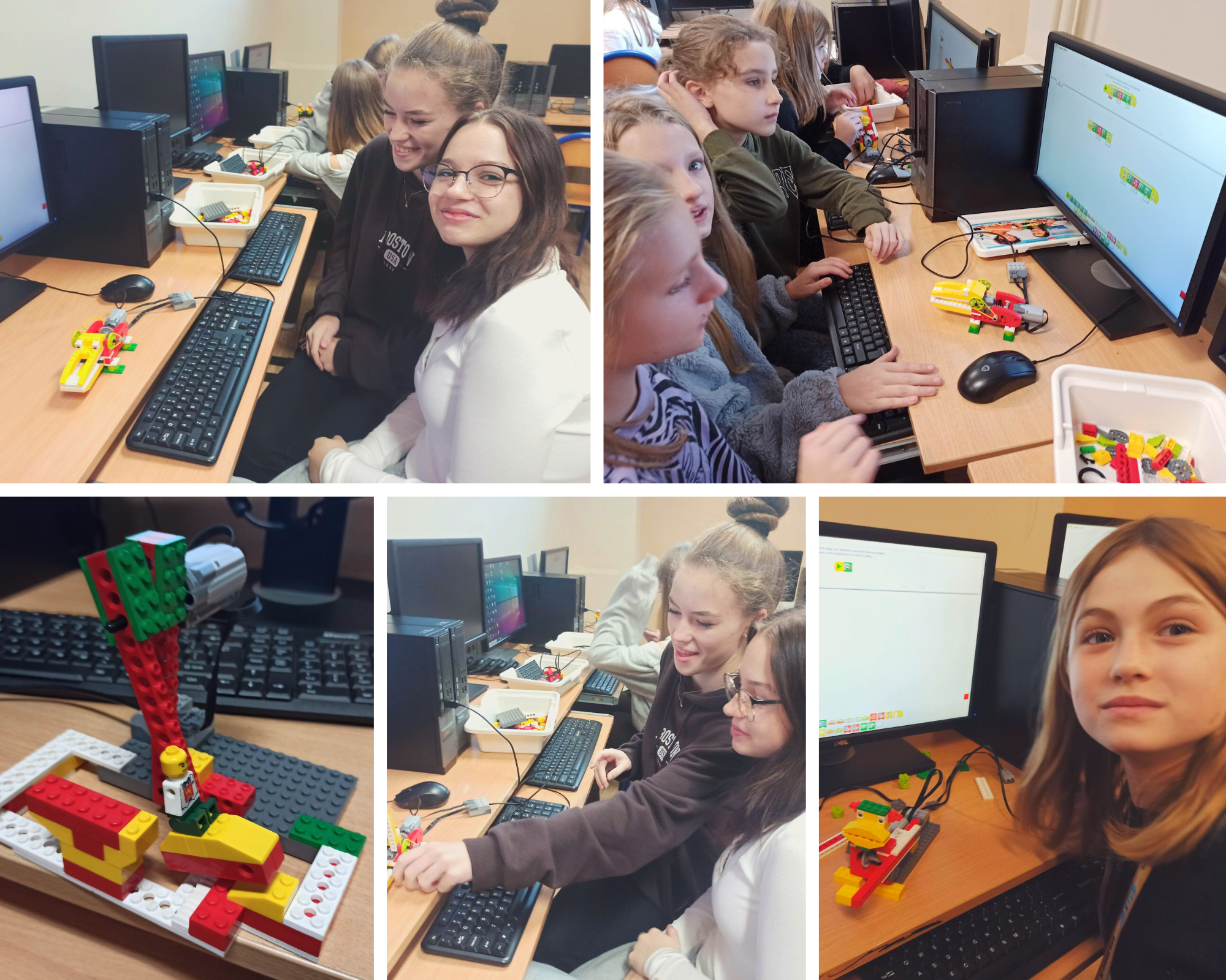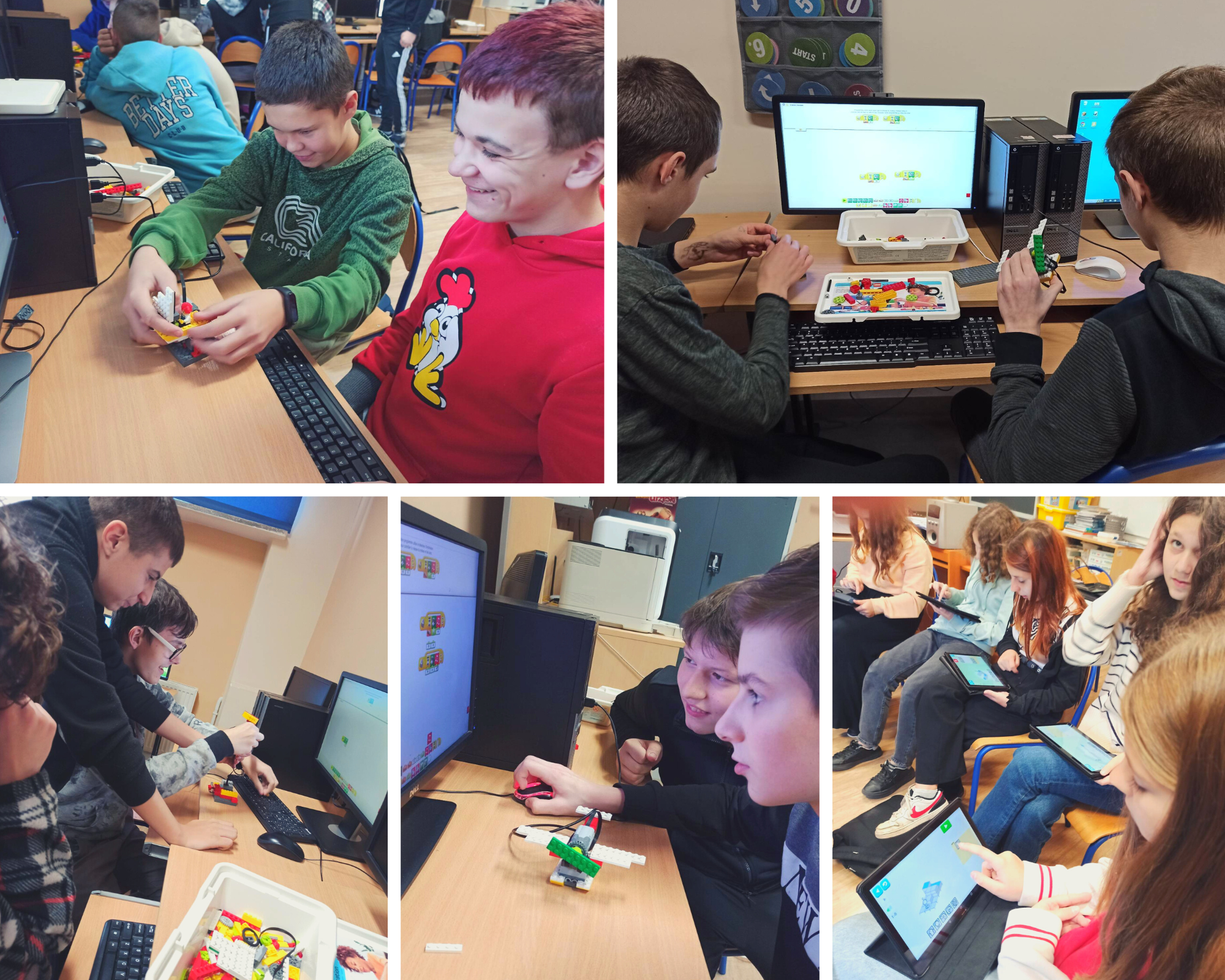 „Gry i zabawy w kodowanie” – tak brzmiało hasło obchodów Europejskiego Tygodnia Kodowania w naszej szkole. Między 10-21 października czynny udział wzięli w nim uczniowie klas IV-VIII. Podczas lekcji informatyki, matematyki i kółek informatycznych w ramach projektu CMI oraz przerw uczniowie klas IV-VIII kodowali na kartach pracy, kodowali z koralików swoje imiona, budowali maszyny z klocków Lego WeDo i Lego Spike oraz je programowali. To była świetna zabawa i szansa poszerzenia swoich zainteresowań.