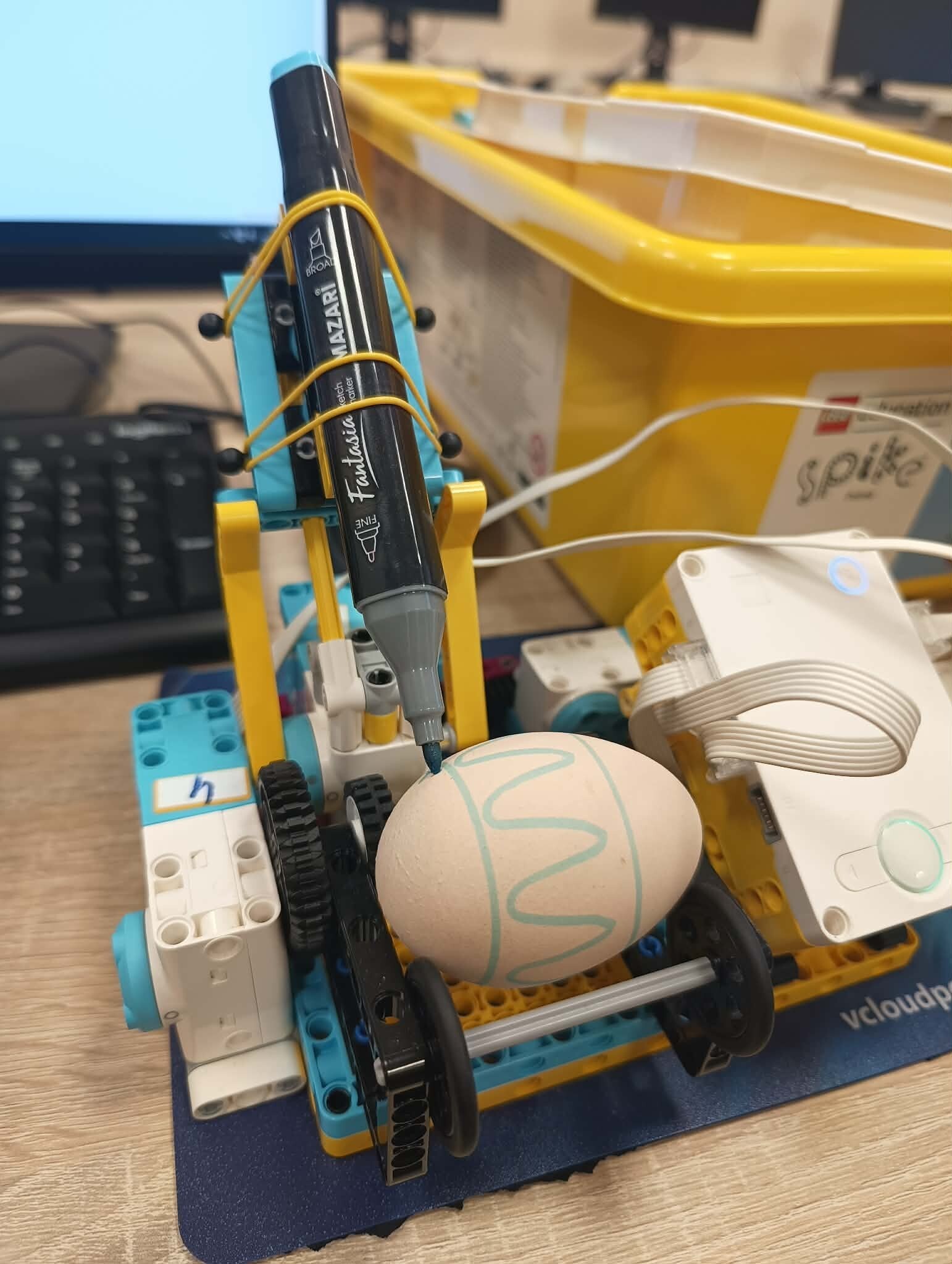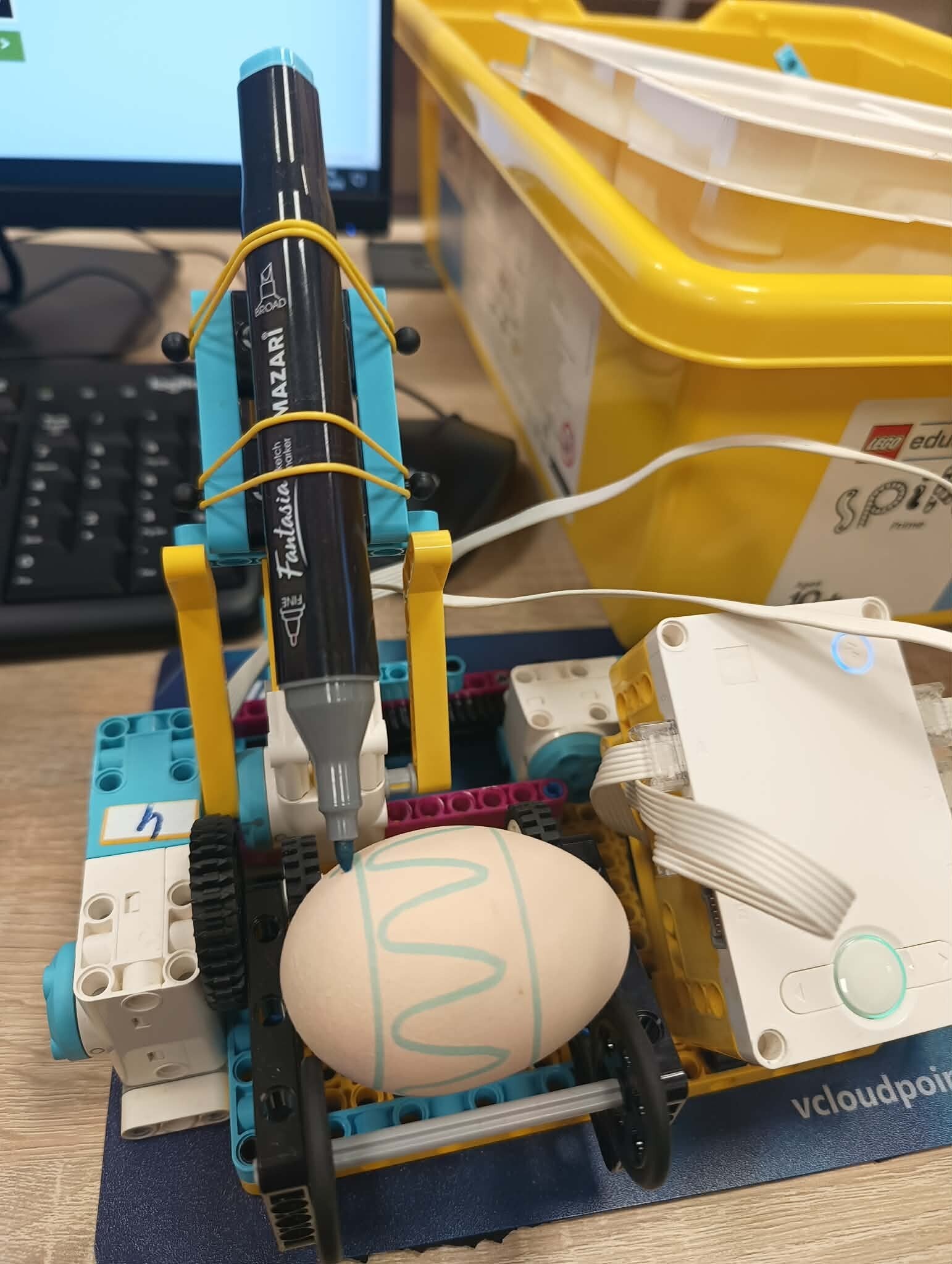 - Klasa 4a poczuły już wielkanocny klimat, projektując i programując „Malarza jajek”. To precyzyjne zadanie wymagało połączenia mechaniki z kodowaniem, by powstały idealne wzory.