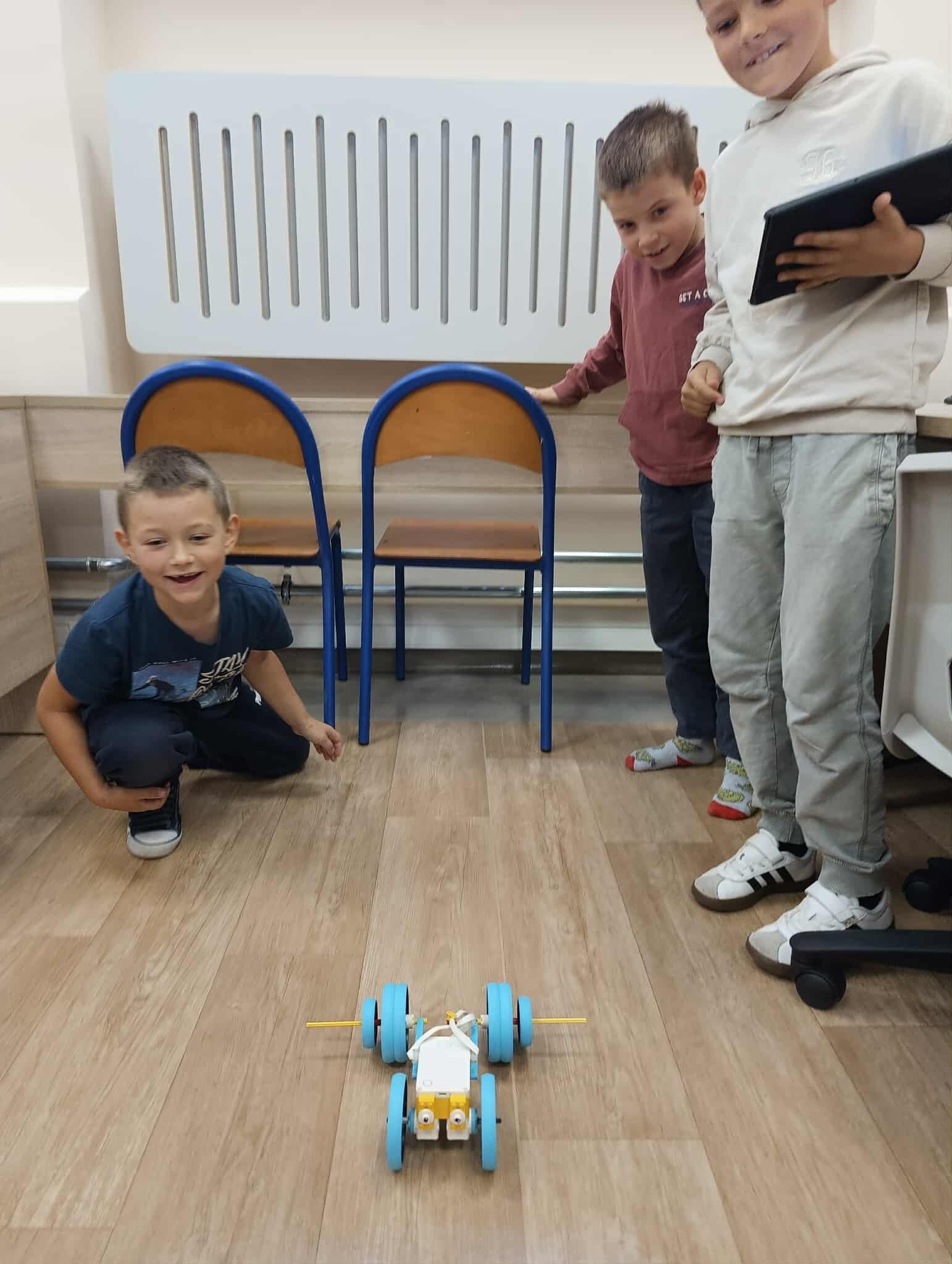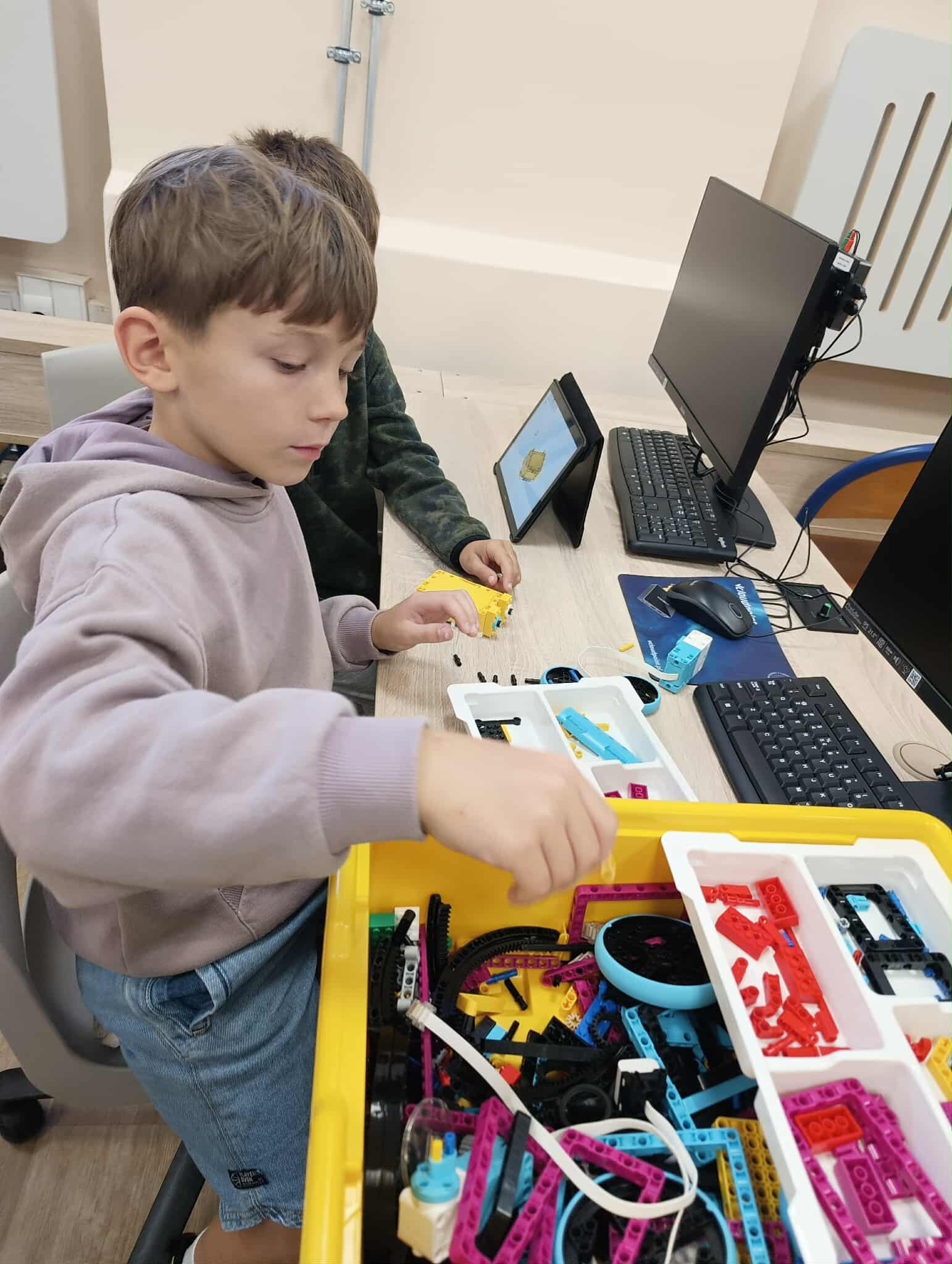 Klasa 2b rozpoczęła swoją przygodę z klockami LEGO Spike Prime na zajęciach dodatkowych z robotyki w naszej szkole. Uczniowie poznają podstawy programowania i robotyki, budując i programując proste roboty, które reagują na polecenia i otoczenie. Zajęcia rozwijają kreatywność, logiczne myślenie oraz umiejętność pracy w zespole. Kolejne spotkania odbędą się regularnie – zapraszamy do śledzenia relacji na szkolnej stronie.