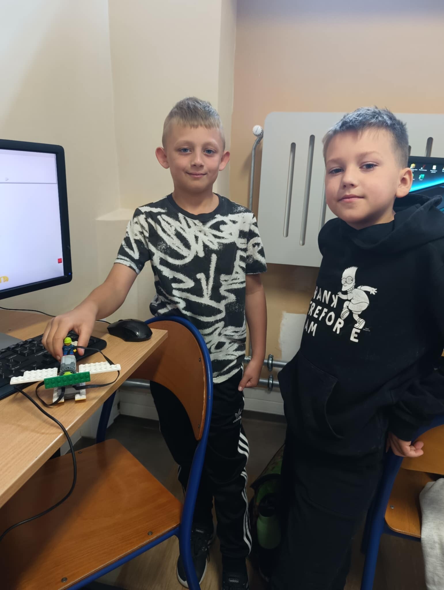 Uczniowie klasy 2c rozpoczęli swoją przygodę z robotyką, pracując z zestawami LEGO WeDo1. Podczas zajęć budowali proste modele z klocków, a następnie programowali je tak, by się poruszały i wydawały dźwięki. Dzieci z entuzjazmem rozwijały swoje umiejętności logicznego myślenia, współpracy i kreatywności. Nauka przez zabawę to najlepszy sposób na zdobywanie wiedzy!