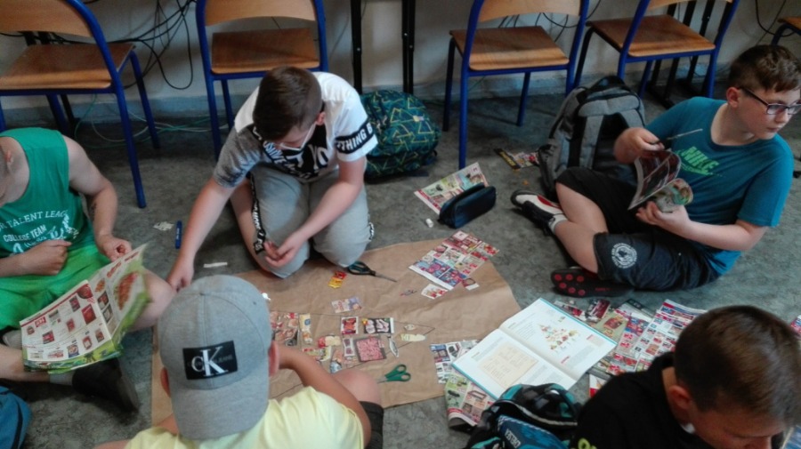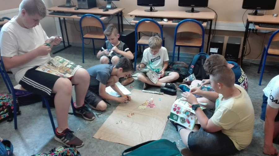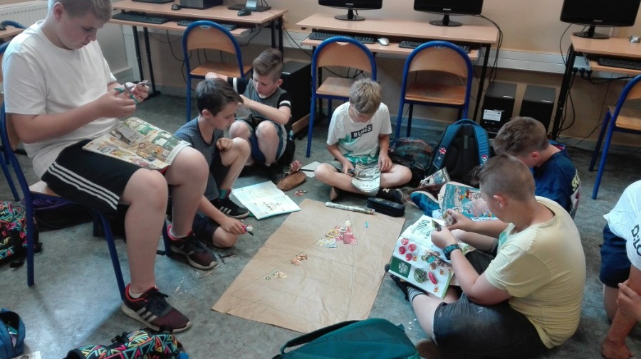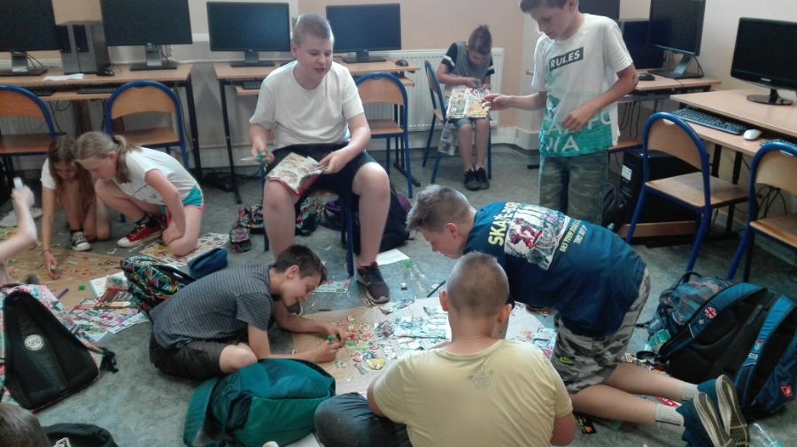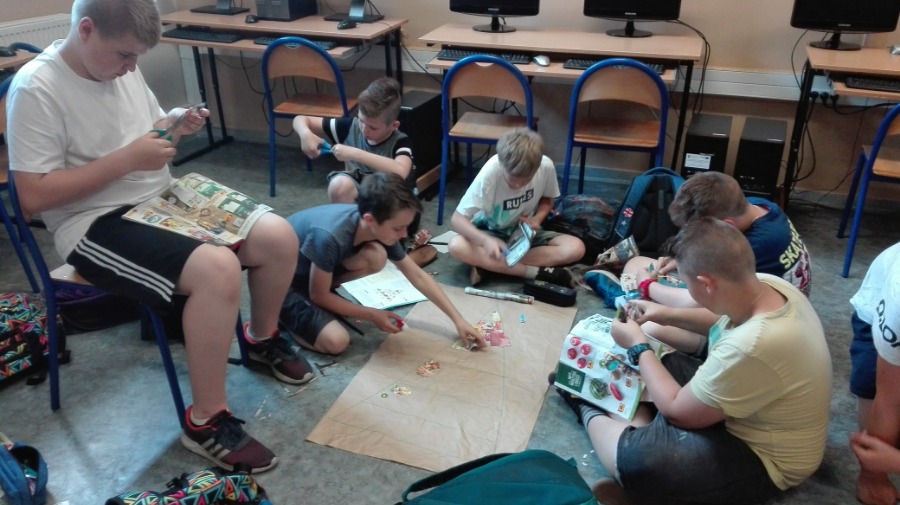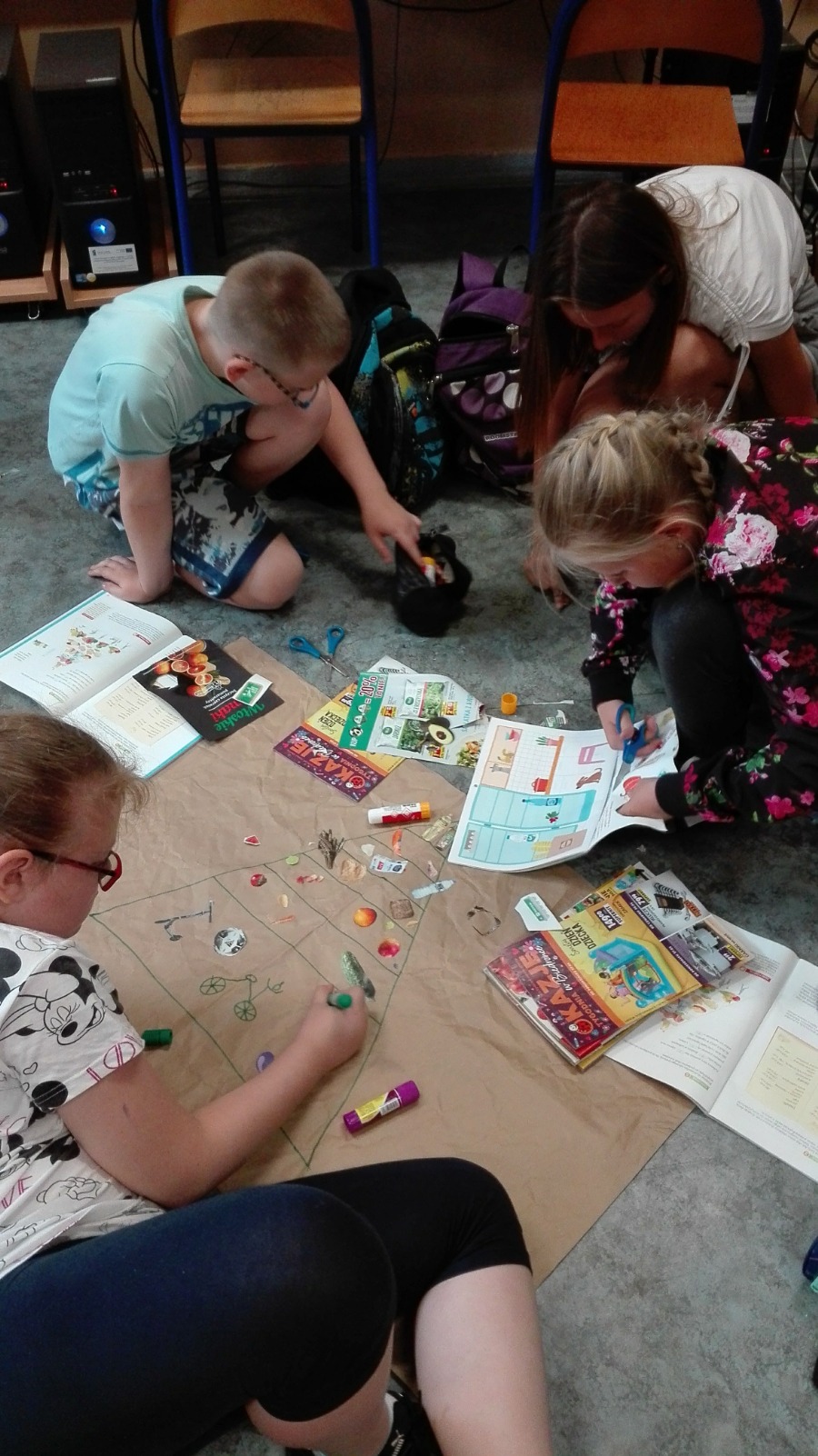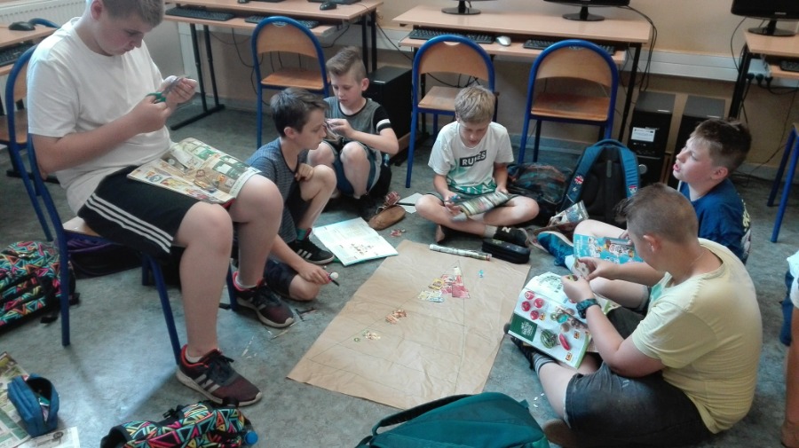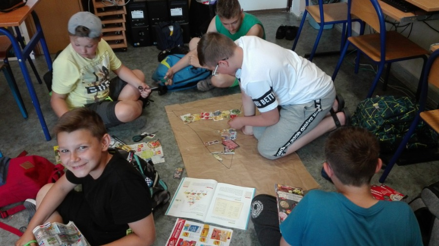 Uczniowie klas 5 podczas zajęć technicznych uczyli się pracować w grupach poznając zasady zdrowego żywienia.