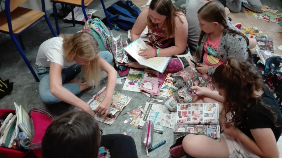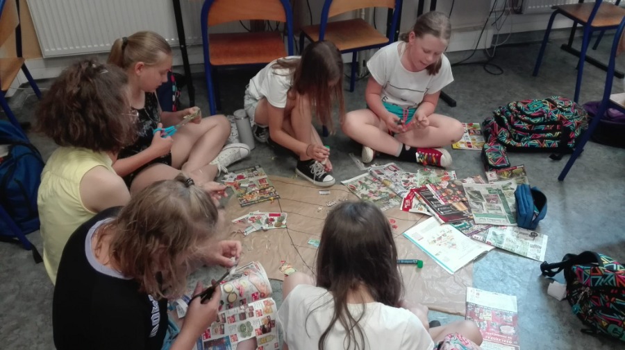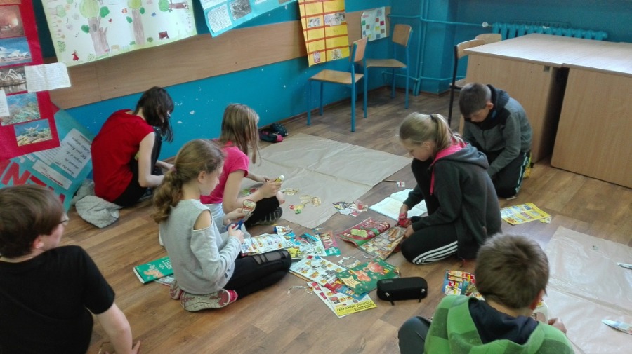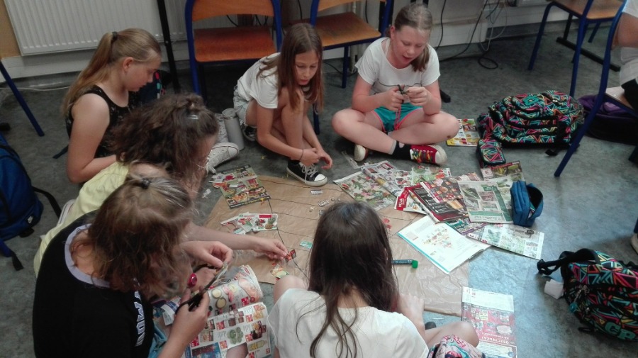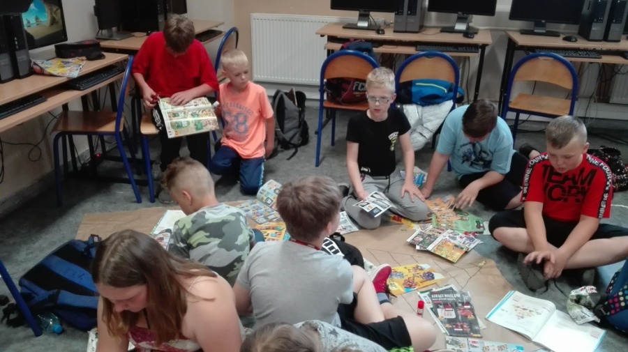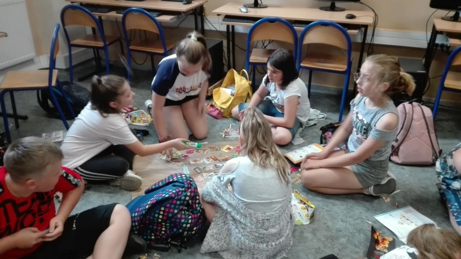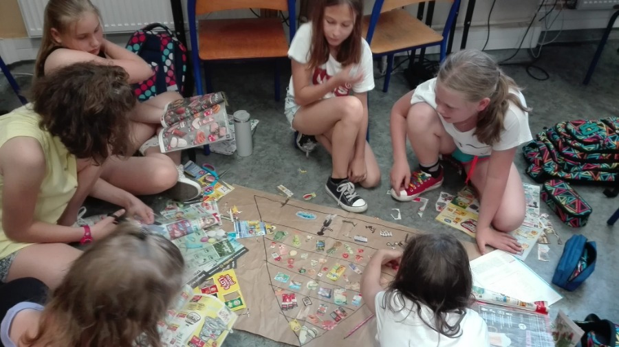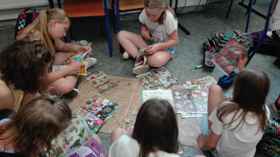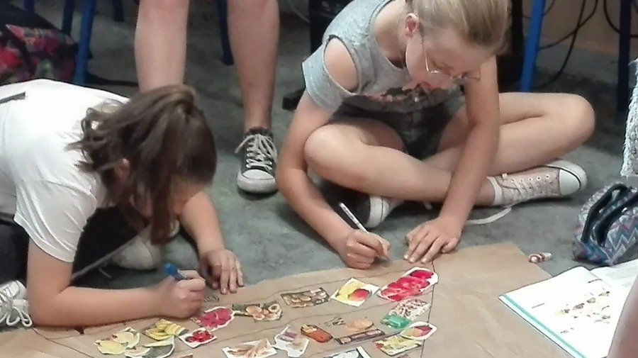 Uczniowie klas 5 podczas zajęć technicznych uczyli się pracować w grupach poznając zasady zdrowego żywienia.