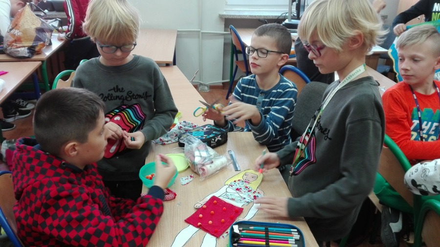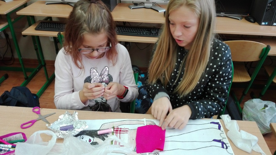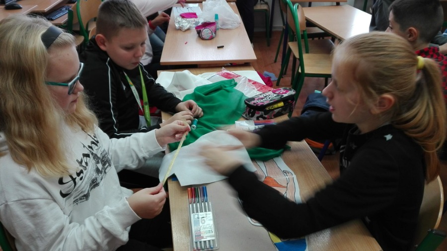 Uczniowie klas 5 podczas zajęć techniki wcielili się w rolę projektantów mody.