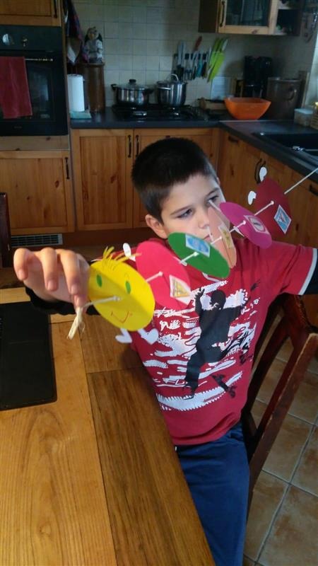 Uczniowie klasy 4a i 4b podczas lekcji techniki wykonali piękne stonogi.